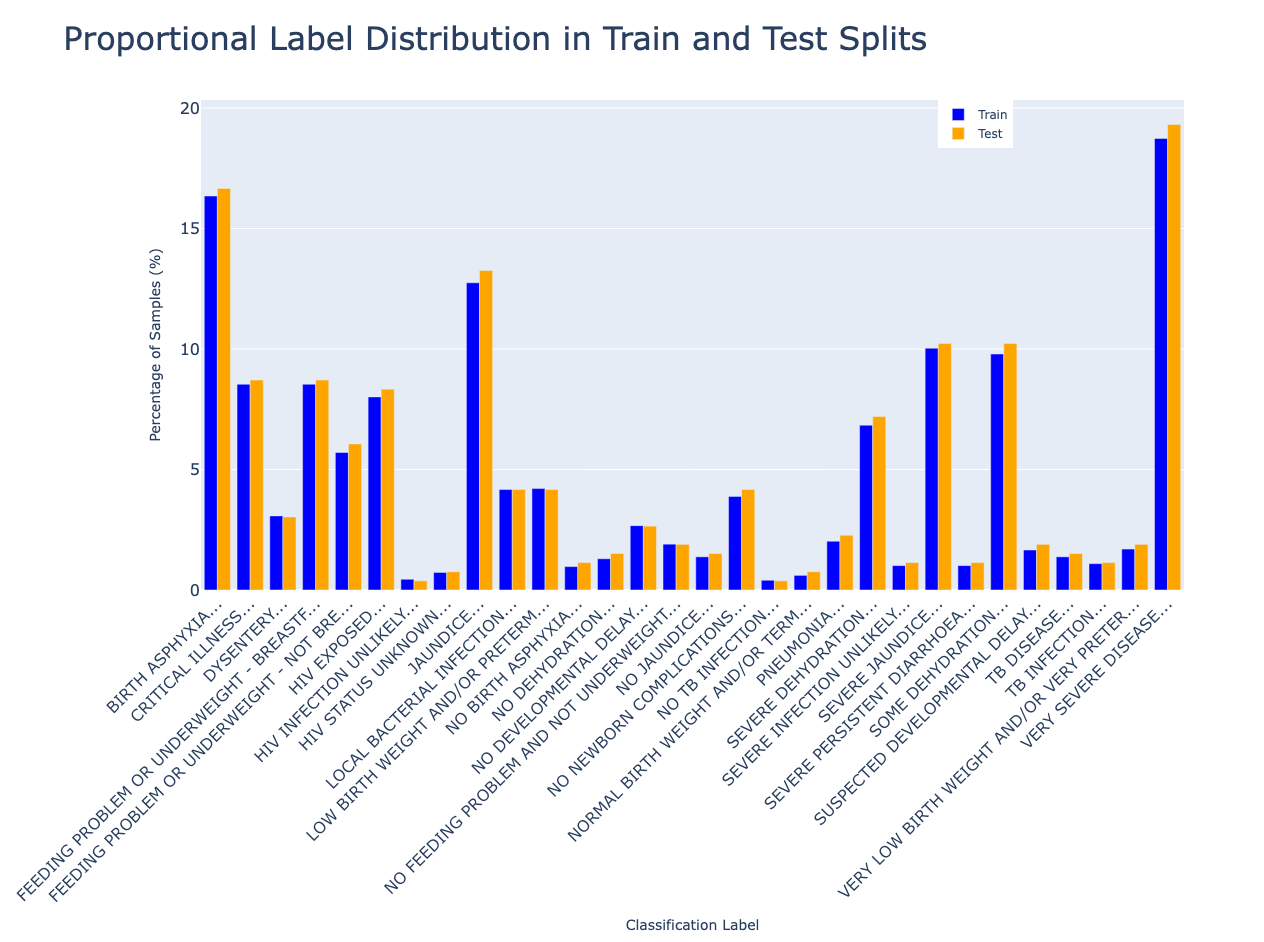 VERY SEVERE DISEASE), we need a splitting strategy that preserves the full label