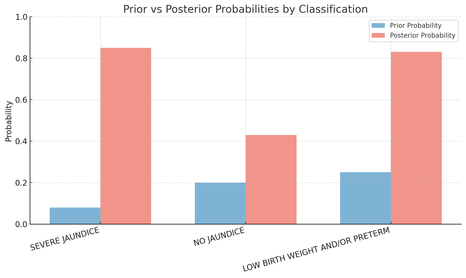 By combining prior prevalence and real-time evidence, the system provides interpretable, ranked probabilities, which are all critical for triage, risk stratification, and clinical support.