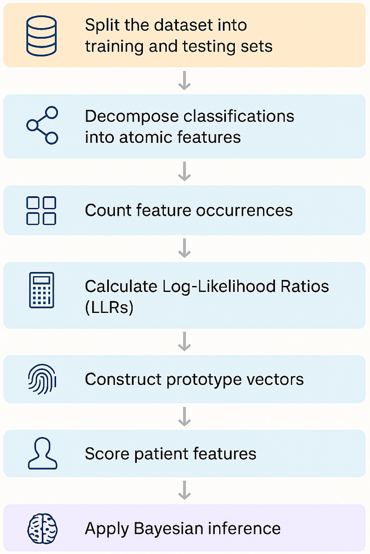 The outcome is a lightweight, interpretable diagnostic engine that mirrors the way clinicians synthesize information—ranking possible diagnoses based on evidence and prior knowledge.